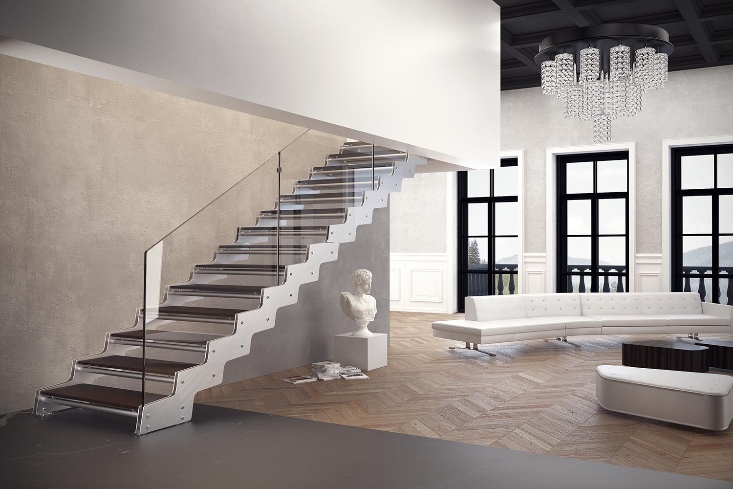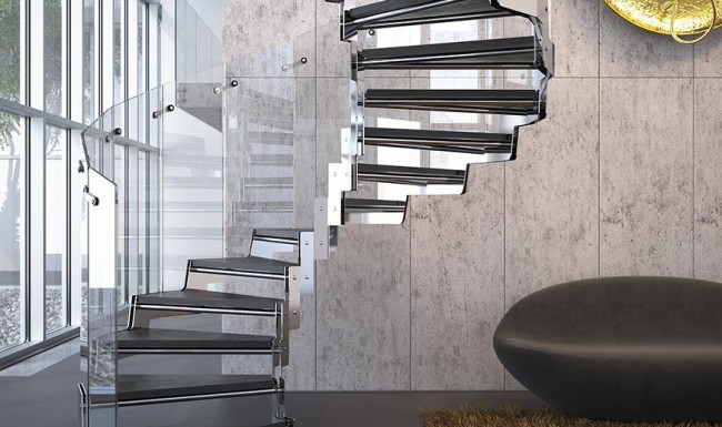 Nous le présentons ici dans trois environnements différents : un espace raffiné et classique, parce que l’acier et le verre sont des éléments pouvant être combinés à des matériaux chauds, à des ambiances contemporaines et de style rétro, pour donner une touche de modernité, un espace contemporain, où le ciment et le verre dominent, et enfin un espace commercial, dans lequel l’escalier présente toutes les caractéristiques esthétiques, structurelles et techniques adaptées à un usage public. Onda existe en version «quart tournant» ou «hélicoïdale». Onda est adapté à une utilisation résidentielle et publique.